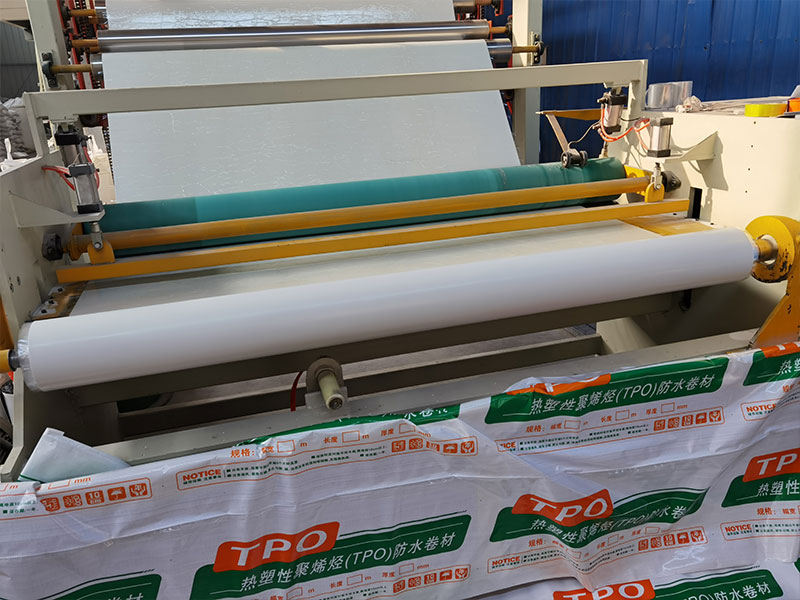 TPO防水卷材全稱為熱塑性聚烯烴,是一種以采用先進聚合技術將乙丙(EP) 橡膠與聚丙烯結合在一起的熱塑性聚烯烴(TPO) 材料為基料,以聚酯纖維網格織物做胎體增強材料構成,并采用先進加工工藝制成的片狀可卷曲的防水材料。該材料既具有乙丙(EP) 橡膠的長期耐候性和耐久性,又具聚丙烯的可焊接性,兩層TPO材料中間夾一層聚酯纖維織物,可增強其物理性能,提高其斷裂強度、抗疲勞和抗穿刺能力。增強層上表面TPO有高反射性的以白色為主的淺色光滑表面。